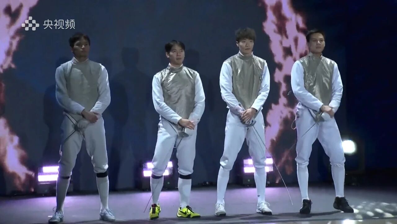击剑男子花剑团体比赛中