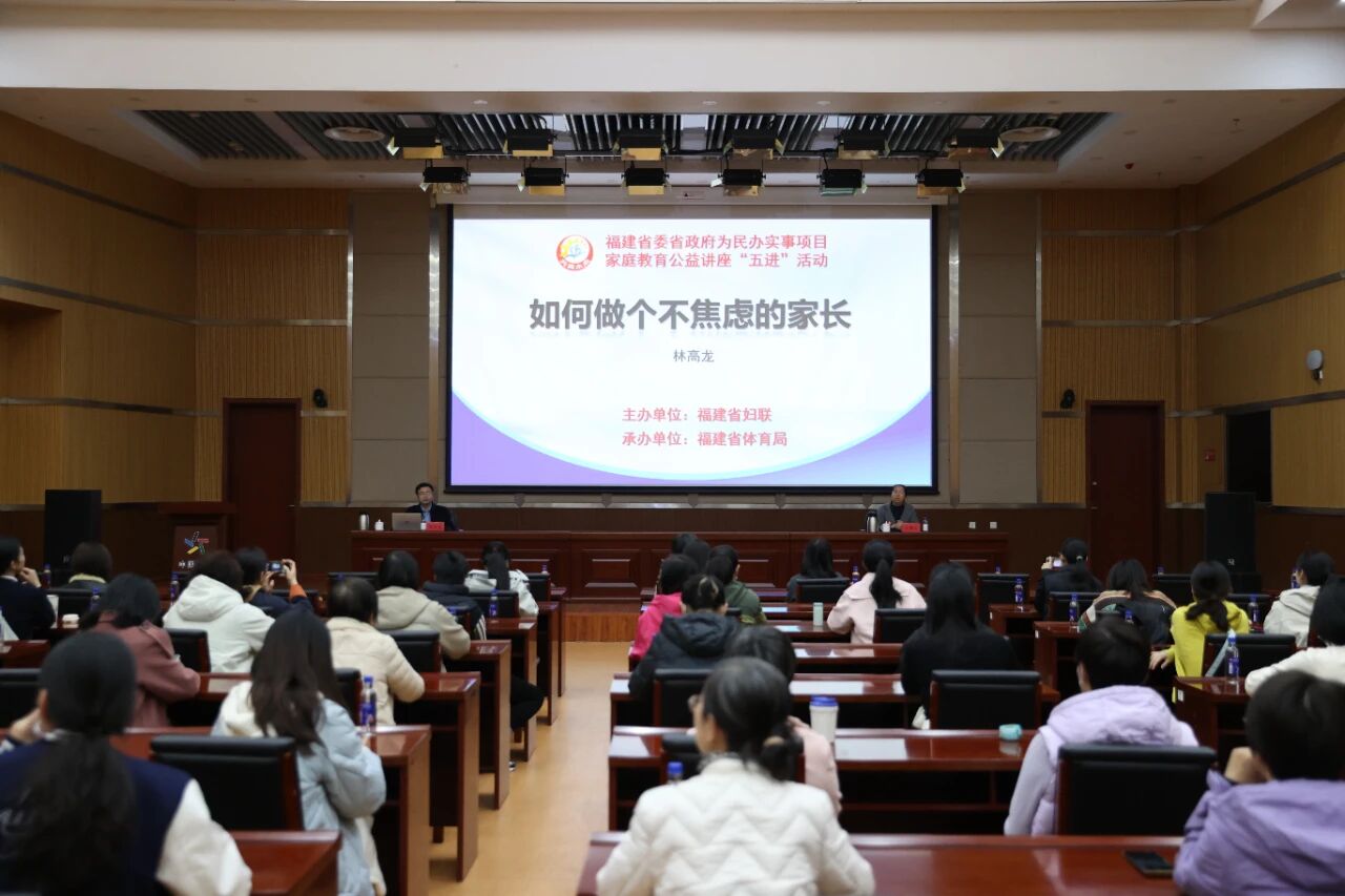 为深入学习贯彻习近平总书记关于注重家庭家教家风的重要论述和党的二十届四中全会精神,推动局系统妇女职工“学最美、做最美”,12月4日上午,省体育局直属机关妇委会举办家庭教育公益讲座,邀请福建省家庭教育研究会副秘书长,福建省学校家庭教育指导服务中心特聘专家、福州市家庭教育研究会副会长林高龙作《如何做个不焦虑的家长》专题讲座,局系统在榕妇女职工85人参加。