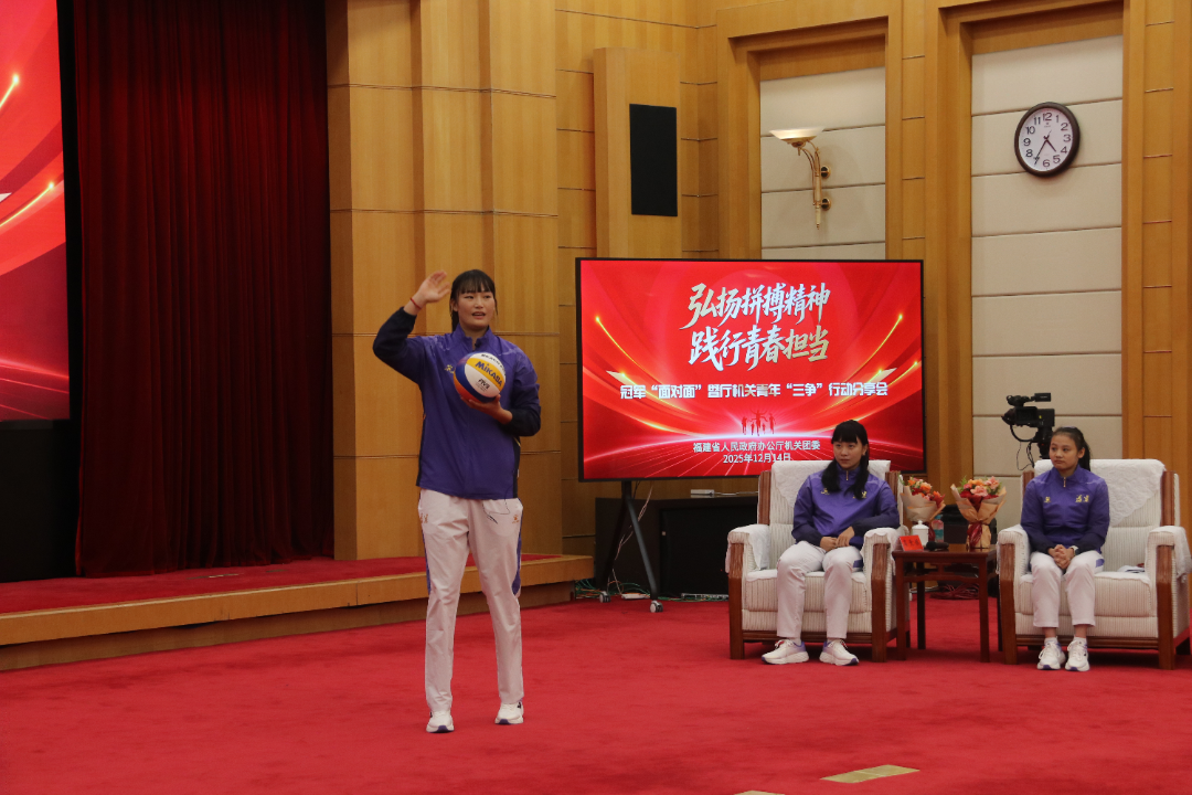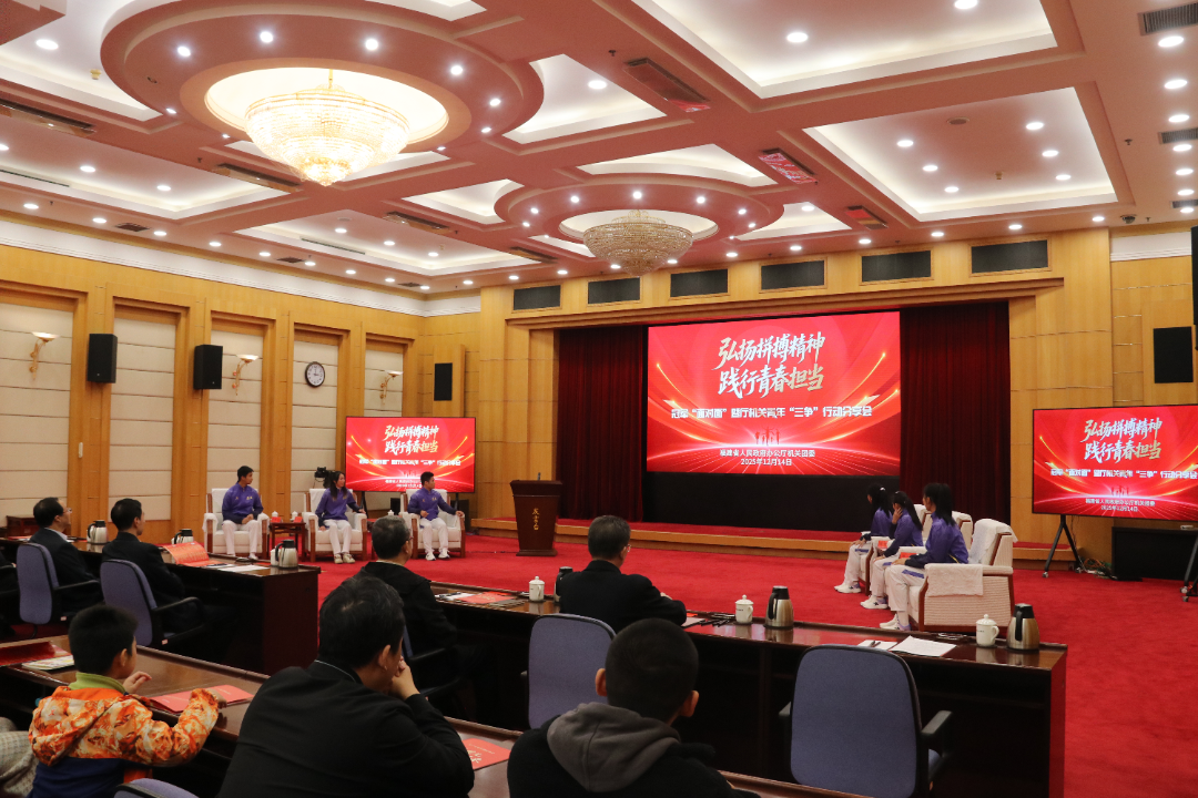 12月14日,省政府办公厅以“弘扬拼搏精神 践行青春担当”为主题,举办冠军“面对面”暨机关青年“三争”行动分享会,邀请第十五届全国运动会冠军李发彬、葛曼棋、林雨薇、邱祺缘、龚德滨、曾津津与机关青年干部开展“面对面”学习交流,互相激励进步。