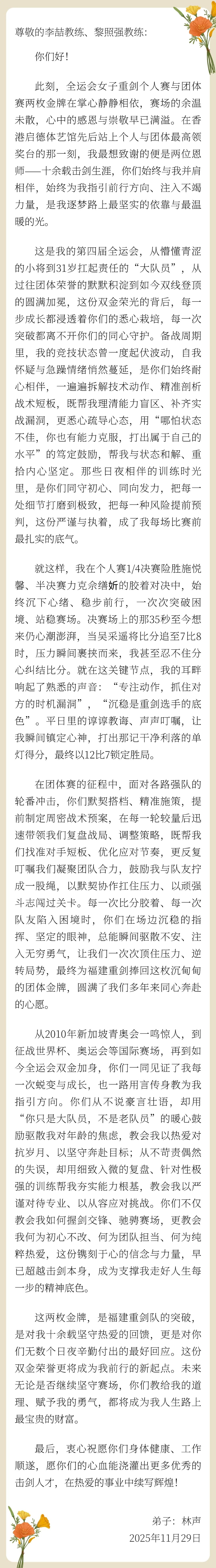 全运感恩・致教练 | 林声:这两枚金牌,是给你们最好的回应