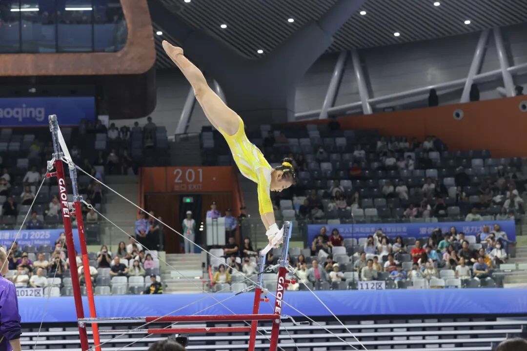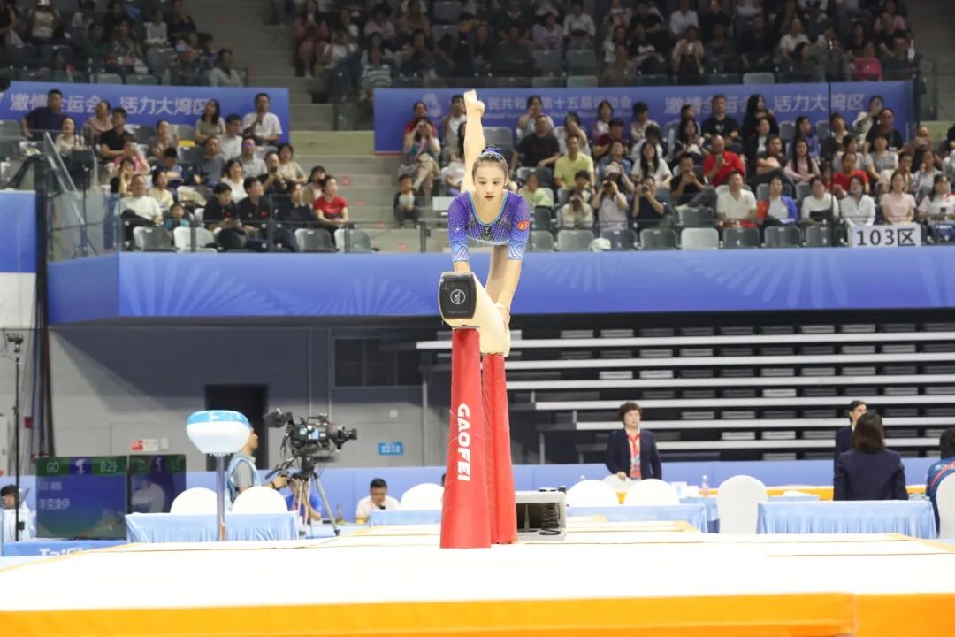 这是她个人第一枚全运会金牌,一天前,她刚刚获得个人全能银牌,时隔四年,她以1金1银的成绩,为自己的第二次全运之旅画上句号。